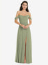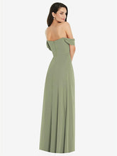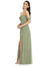 【NEW】【STYLE: 3105】オフショルダー ドレープ 袖 マキシ ドレス 前面 スリット【COLOR: Sage】【SIZE: 00-30W】