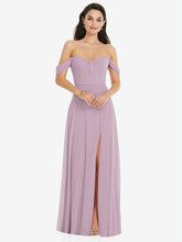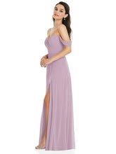 【NEW】【STYLE: 3105】オフショルダー ドレープ 袖 マキシ ドレス 前面 スリット【COLOR: Suede Rose】【SIZE: 00-30W】