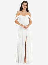 【NEW】【STYLE: 3105】オフショルダー ドレープ 袖 マキシ ドレス 前面 スリット【COLOR: White】【SIZE: 00-30W】
