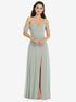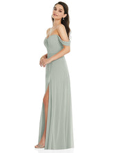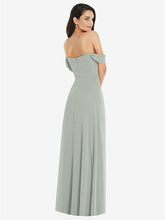 【NEW】【STYLE: 3105】オフショルダー ドレープ 袖 マキシ ドレス 前面 スリット【COLOR: Willow Green】【SIZE: 00-30W】
