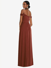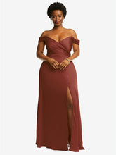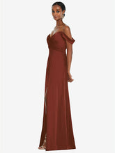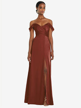 【NEW】【STYLE: 3108】オフショルダー フラウンス 袖 帝国 ウエスト ガウン フロント スリット【COLOR: Auburn Moon】【SIZE: 00-30W】