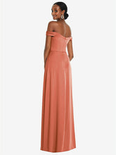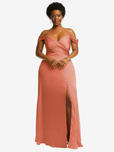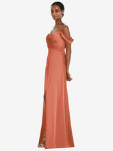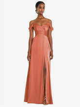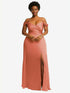 【NEW】【STYLE: 3108】オフショルダー フラウンス 袖 帝国 ウエスト ガウン フロント スリット【COLOR: Terracotta Copper】【SIZE: 00-30W】