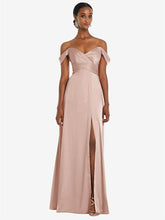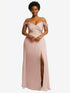 【NEW】【STYLE: 3108】オフショルダー フラウンス 袖 帝国 ウエスト ガウン フロント スリット【COLOR: Toasted Sugar】【SIZE: 00-30W】