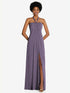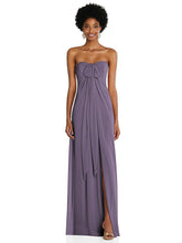 流れるルクスシフォンのこの洗練されたギリシャのコラムドレスの滑走路を駆け下りたいと思うでしょう。コンバーチブルタイストラップにより、ホルター、ワンショルダー、またはストラップレスシルエットを選択できます。その流れるスカートは、赤ちゃんの隆起を隠す理想的な方法であり、スリットにより移動して踊りやすくなります。