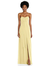 流れるルクスシフォンのこの洗練されたギリシャのコラムドレスの滑走路を駆け下りたいと思うでしょう。コンバーチブルタイストラップにより、ホルター、ワンショルダー、またはストラップレスシルエットを選択できます。その流れるスカートは、赤ちゃんの隆起を隠す理想的な方法であり、スリットにより移動して踊りやすくなります。