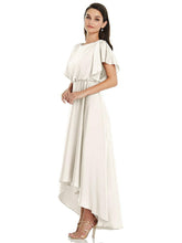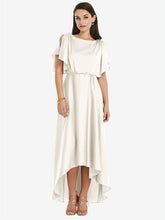 【NEW】【STYLE: 3112】Blouson Bodice Deep V-Back High Low ドレス 羽ばたき 袖【COLOR: Ivory】【SIZE: 00-30W】