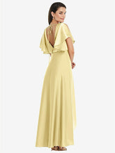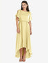 【NEW】【STYLE: 3112】Blouson Bodice Deep V-Back High Low ドレス 羽ばたき 袖【COLOR: Pale Yellow】【SIZE: 00-30W】