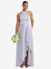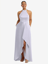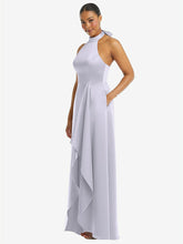 【NEW】【STYLE: 3113】ハイネック ネクタイバック ホルター カスケード 高 低 マキシ ドレス【COLOR: Silver Dove】【SIZE: 00-30W】