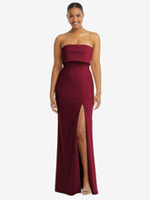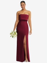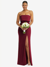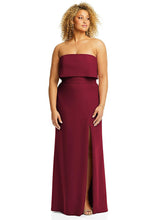 【NEW】【STYLE: 3115】ストラップレス オーバーレイ ボディス クレープ マキシ ドレス 前面 スリット【COLOR: Burgundy】【SIZE: 00-18W】