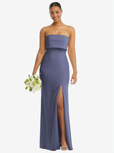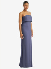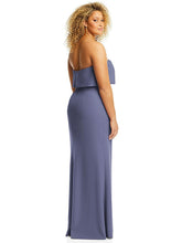 【NEW】【STYLE: 3115】ストラップレス オーバーレイ ボディス クレープ マキシ ドレス 前面 スリット【COLOR: French Blue】【SIZE: 00-18W】