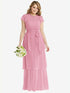 【NEW】【STYLE: 3116】フラッター スリーブ ジュエル 首 シフォン マキシ ドレス ティア ラッフル スカート【COLOR: Peony Pink】【SIZE: 00-30W】