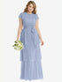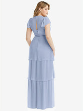 【NEW】【STYLE: 3116】フラッター スリーブ ジュエル 首 シフォン マキシ ドレス ティア ラッフル スカート【COLOR: Sky Blue】【SIZE: 00-30W】