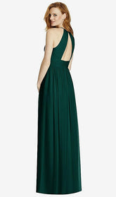 見事でシンプルなこのLux Chiffon Bridesmaidドレスのフルレングスのシルエットは、背面の開いた三角形の細部とバランスが取れています。集まったホルターのネックラインは、自然なシャーリングされた中間とスカートを反映しています。