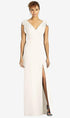 肩と深いVバックでネクタイのディテールを備えたフルレングスノースリーブVネックラックスシフォンドレス。サイドフロントにスリットが付いた人魚のスカート。