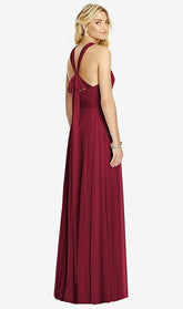 【NEW】【STYLE: 6760】クロス ストラップ オープンバック ホルター マキシ ドレス【COLOR: Burgundy】【SIZE: 00-30W】