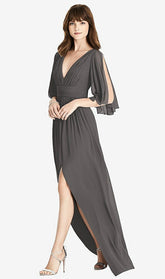 【NEW】【STYLE: 6777】スプリット スリーブ バックレス シフォン マキシ ドレス【COLOR: Caviar Gray】【SIZE: 00-30W】