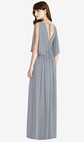 【NEW】【STYLE: 6777】スプリット スリーブ バックレス シフォン マキシ ドレス【COLOR: Platinum】【SIZE: 00-30W】