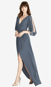 【NEW】【STYLE: 6777】スプリット スリーブ バックレス シフォン マキシ ドレス【COLOR: Silverstone】【SIZE: 00-30W】