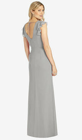 【NEW】【STYLE: 6810】フリル 袖 人魚 ドレス 前面 スリット【COLOR: Chelsea Gray】【SIZE: 00-30W】