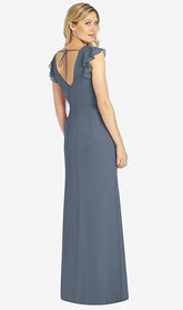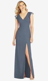 【NEW】【STYLE: 6810】フリル 袖 人魚 ドレス 前面 スリット【COLOR: Silverstone】【SIZE: 00-30W】