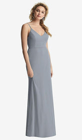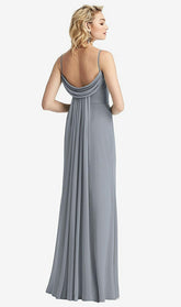 【NEW】【STYLE: 6815】Shirred Sash Cowl-Back Chiffon トランペット ガウン【COLOR: Platinum】【SIZE: 00-30W】