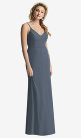 【NEW】【STYLE: 6815】Shirred Sash Cowl-Back Chiffon トランペット ガウン【COLOR: Silverstone】【SIZE: 00-30W】