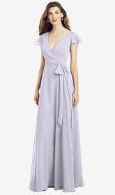 【NEW】【STYLE: 6817】フラッター 袖 フェイク ラップ シフォン ドレス【COLOR: Silver Dove】【SIZE: 00-30W】