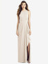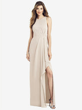 【NEW】【STYLE: 6818】ノースリーブ シフォン ドレス ドレープ フロント スリット【COLOR: Oat】【SIZE: 00-30W】