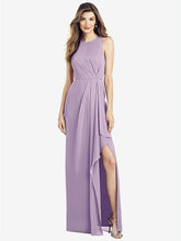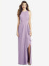 【NEW】【STYLE: 6818】ノースリーブ シフォン ドレス ドレープ フロント スリット【COLOR: Pale Purple】【SIZE: 00-30W】