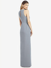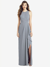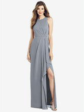 【NEW】【STYLE: 6818】ノースリーブ シフォン ドレス ドレープ フロント スリット【COLOR: Platinum】【SIZE: 00-30W】