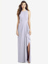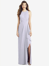 【NEW】【STYLE: 6818】ノースリーブ シフォン ドレス ドレープ フロント スリット【COLOR: Silver Dove】【SIZE: 00-30W】