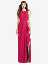 【NEW】【STYLE: 6818】ノースリーブ シフォン ドレス ドレープ フロント スリット【COLOR: Vivid Pink】【SIZE: 00-30W】
