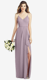 【NEW】【STYLE: 6820】スパゲッティ ストラップ ドレープ スカート ガウン 前面 スリット【COLOR: Lilac Dusk】【SIZE: 00-30W】