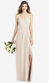 【NEW】【STYLE: 6820】スパゲッティ ストラップ ドレープ スカート ガウン 前面 スリット【COLOR: Oat】【SIZE: 00-30W】