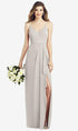 【NEW】【STYLE: 6820】スパゲッティ ストラップ ドレープ スカート ガウン 前面 スリット【COLOR: Oyster】【SIZE: 00-30W】