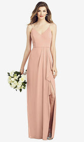 【NEW】【STYLE: 6820】スパゲッティ ストラップ ドレープ スカート ガウン 前面 スリット【COLOR: Pale Peach】【SIZE: 00-30W】