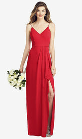 【NEW】【STYLE: 6820】スパゲッティ ストラップ ドレープ スカート ガウン 前面 スリット【COLOR: Parisian Red】【SIZE: 00-30W】