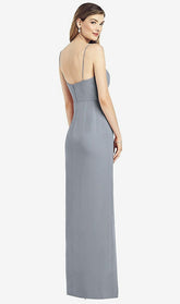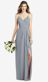 【NEW】【STYLE: 6820】スパゲッティ ストラップ ドレープ スカート ガウン 前面 スリット【COLOR: Platinum】【SIZE: 00-30W】