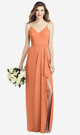 【NEW】【STYLE: 6820】スパゲッティ ストラップ ドレープ スカート ガウン 前面 スリット【COLOR: Sweet Melon】【SIZE: 00-30W】