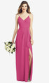【NEW】【STYLE: 6820】スパゲッティ ストラップ ドレープ スカート ガウン 前面 スリット【COLOR: Tea Rose】【SIZE: 00-30W】