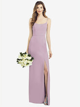 【NEW】【STYLE: 6822】スパゲッティ ストラップ Vバック クレープ ガウン 前面 スリット【COLOR: Suede Rose】【SIZE: 00-30W】