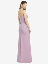 愛情を込めて仕立てられたフルレングスのスパゲッティストラップクレープドレスは、特別な機会と覚えておくべき瞬間の古典的な外観を与えます。サイドフロントスリットを備えた長いトランペットスカートは、正式でありながら魅力的なアペラースを与えます。