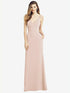 【NEW】【STYLE: 6824】Vバック スパゲッティ ストラップ マキシ ドレス ポケット付き【COLOR: Cameo】【SIZE: 00-30W】