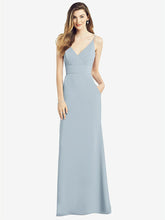 【NEW】【STYLE: 6824】Vバック スパゲッティ ストラップ マキシ ドレス ポケット付き【COLOR: Mist】【SIZE: 00-30W】