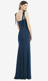 【NEW】【STYLE: 6826】脂肪 タイショルダー クレープ トランペット ガウン 前面 スリット【COLOR: Sofia Blue】【SIZE: 00-30W】