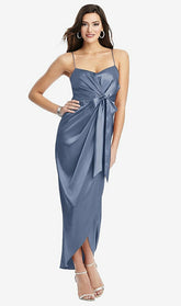 【NEW】【STYLE: 6828】フェイク ラップ MIDI ドレス ドレープ チューリップ スカート【COLOR: Larkspur Blue】【SIZE: 00-30W】