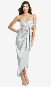 【NEW】【STYLE: 6828】フェイク ラップ MIDI ドレス ドレープ チューリップ スカート【COLOR: Sterling】【SIZE: 00-30W】