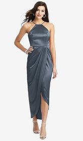 【NEW】【STYLE: 6829】ホルター MIDI ドレス ドレープ付き ドレープ チューリップ スカート【COLOR: Silverstone】【SIZE: 00-30W】