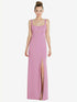 【NEW】【STYLE: 6852】ワイド ストラップ スラッシュ カットアウト 帝国 ドレス 前面 スリット【COLOR: Powder Pink】【SIZE: 00-30W】