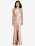 【NEW】【STYLE: 6853】ホルター コンバーチブル ストラップ バイアス スリップ ドレス 前面 スリット【COLOR: Cameo】【SIZE: 00-30W】